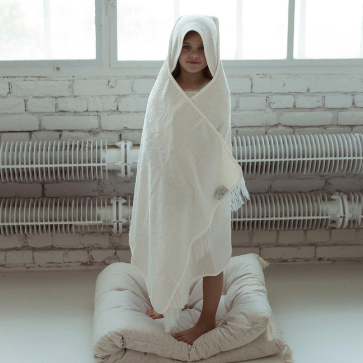 バンブーレーヨン80%コットン20% のBoho styleフーデッドタオルです。