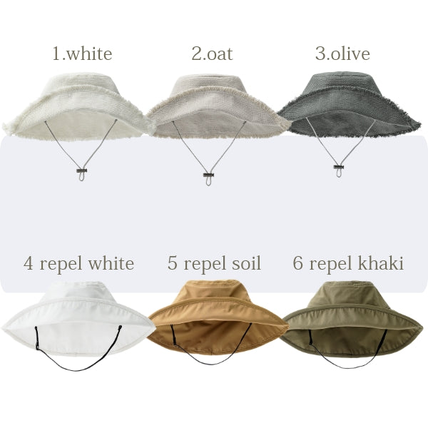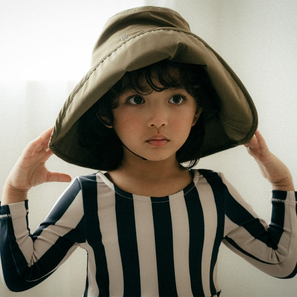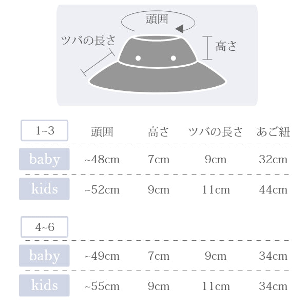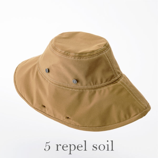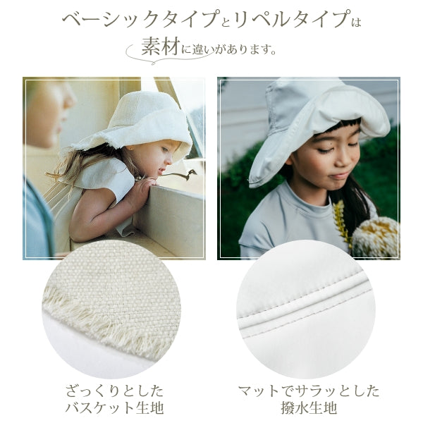 生地に UV・撥水加工を施し、頭と首すじを紫外線からガードします。