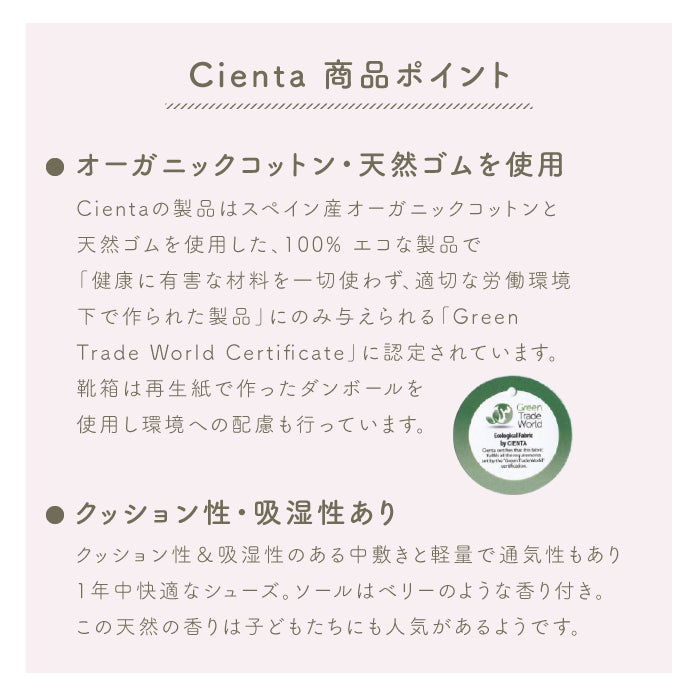 ・シエンタの靴は全て手作りのため、ゴムとの接着部分や縫い目付近などに樹脂や塗料等が浮き出ている場合があります。