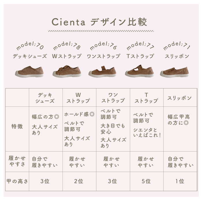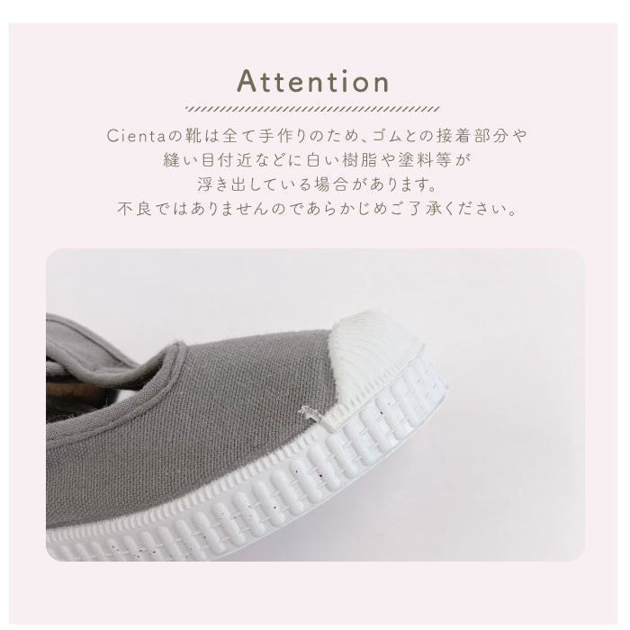 ・シエンタの靴は全て手作りのため、ゴムとの接着部分や縫い目付近などに樹脂や塗料等が浮き出ている場合があります。