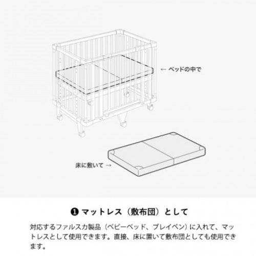 コンパクトベッドFreeと連結ができ、キッズ用のお布団やプレイマット、リビングマットとして使える多機能マットレスです。