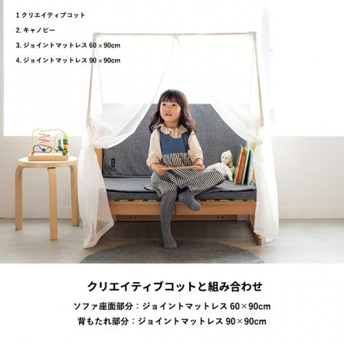クリエイティブコットやミニジョイントベッドNEOにジャストフィットのサイズ感で、キッズソファとして使用する際に、背もたれ部のクッションとして使えます。