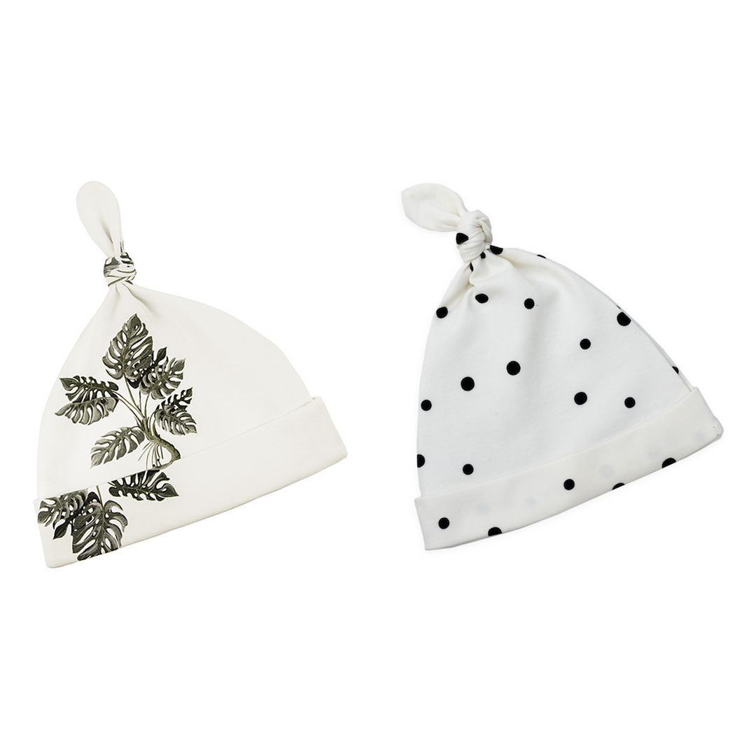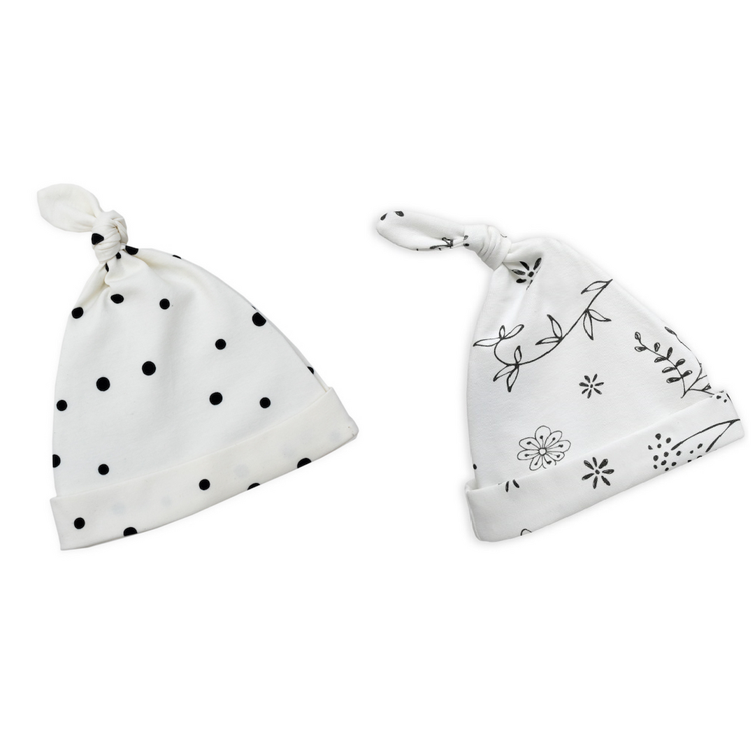 Sleepee-147106-Baby Cap 2-Pack-Black Dots/Bloom-0-2m-Rela-X JP