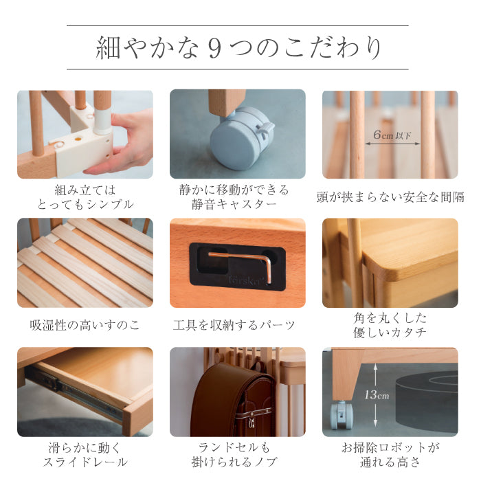 本体:ブナ(天然無垢材を使用しており、柵の色味には若干の個体差があります)