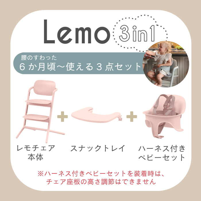 【3点セット】 レモチェア単体 + スナックトレイ + ハーネス付きベビーセット