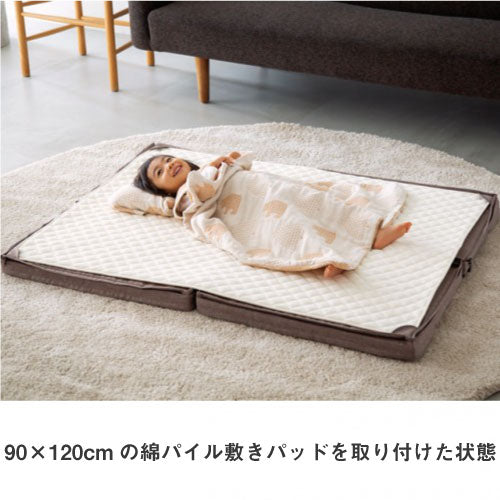 四隅にはズレを防止するスナップボタン付で装着も簡単!コンパクトベッドFreeやジョイントマットレス、さらに2つを連結して使用する際にもぴったりの敷きパッドです。