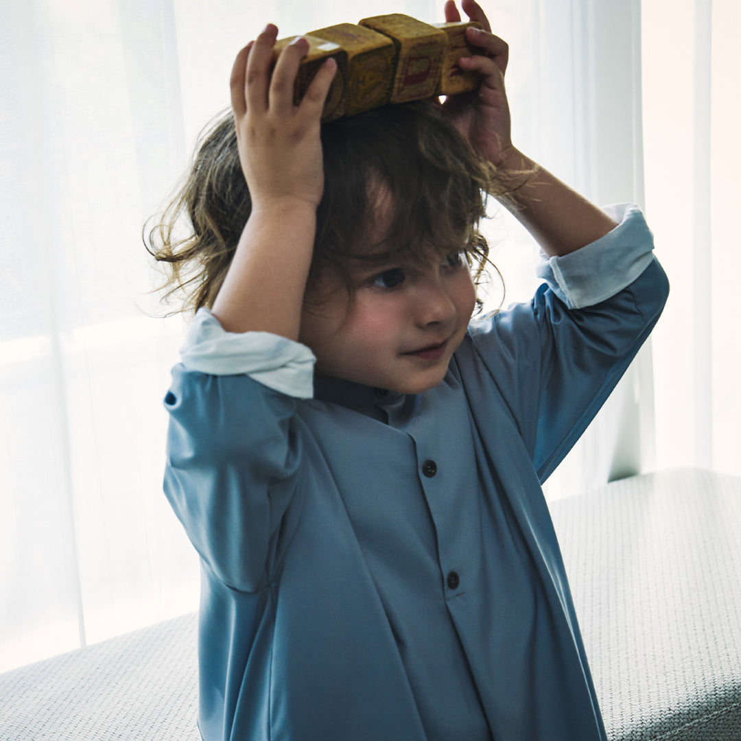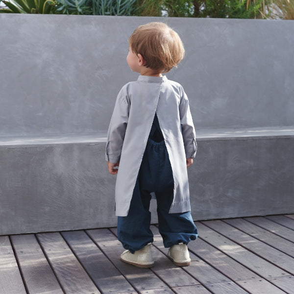お食事シーンのみならず、お外遊びやお出かけ着としても大活躍のお食事エプロン。