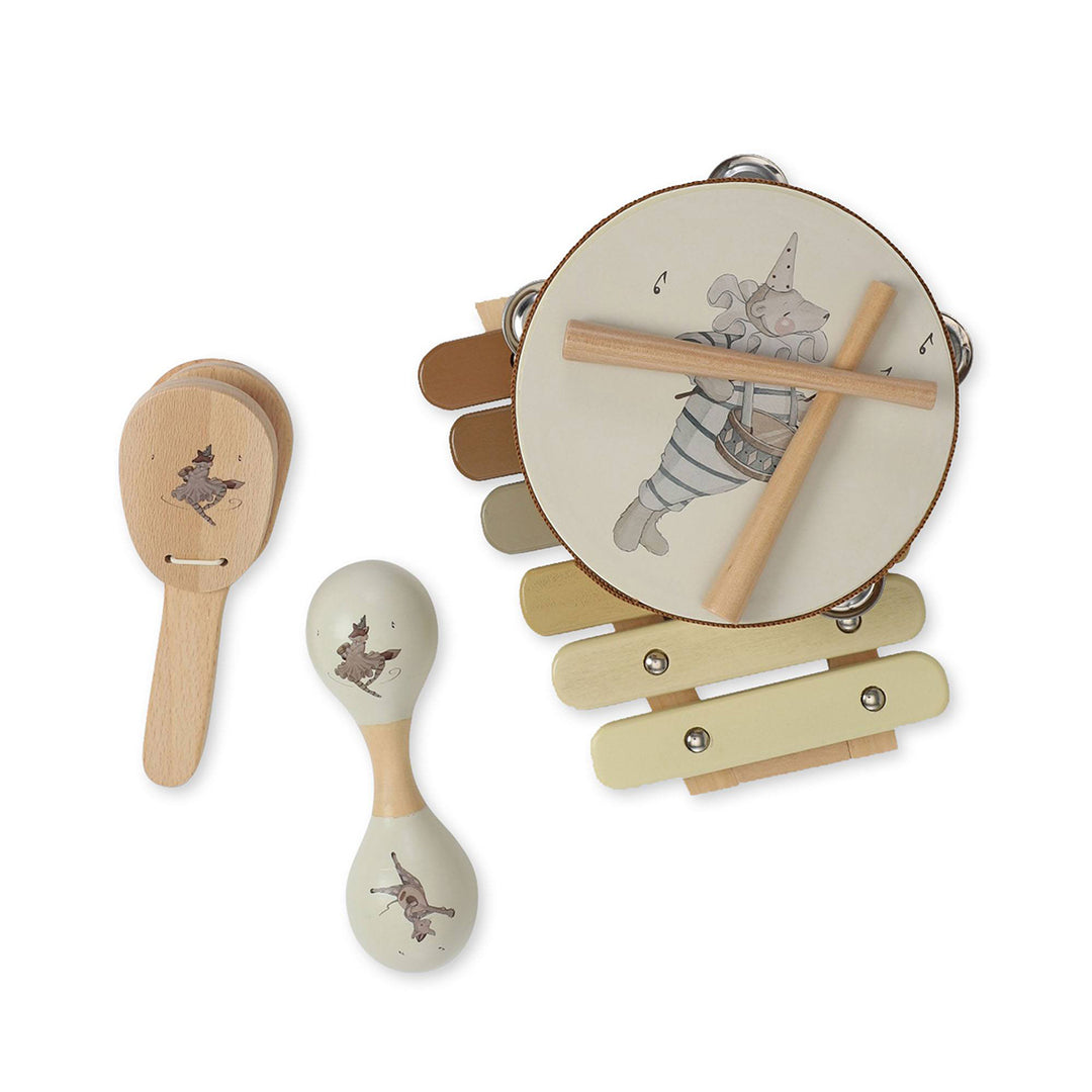 ・Konges Sløjdのおしゃれなイラストが描かれている楽器4点セット。