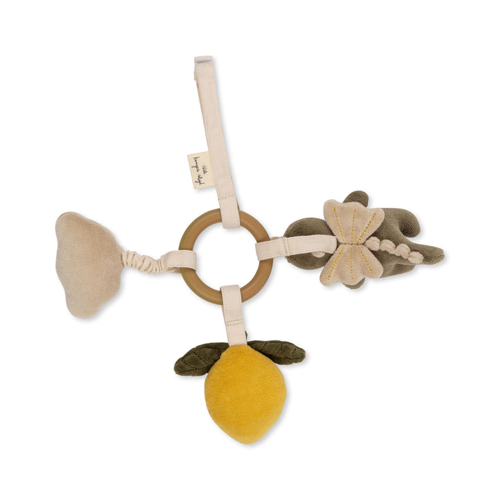 ・リングにはプラスチック製のミラーやラトル、かしゃかしゃ音のなる仕掛けがあるおもちゃなどがついており、 遊びながら赤ちゃんの感覚を刺激するのに最適です。
