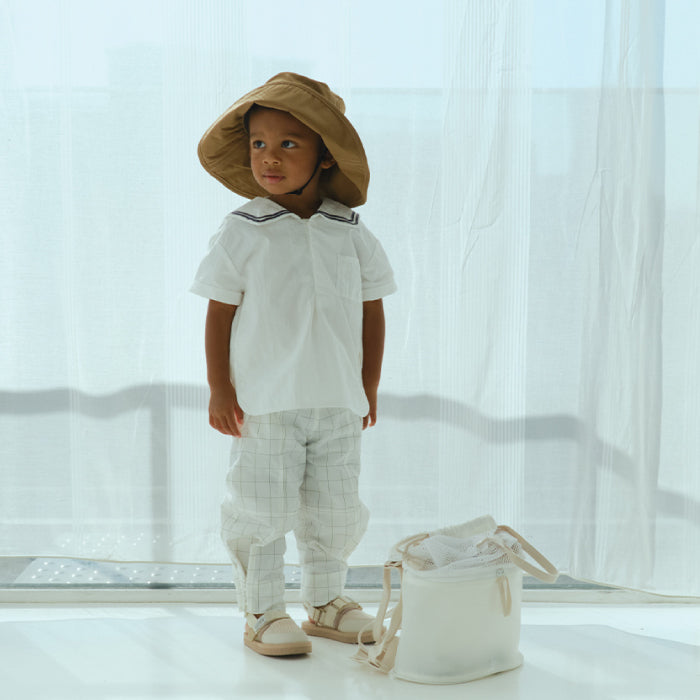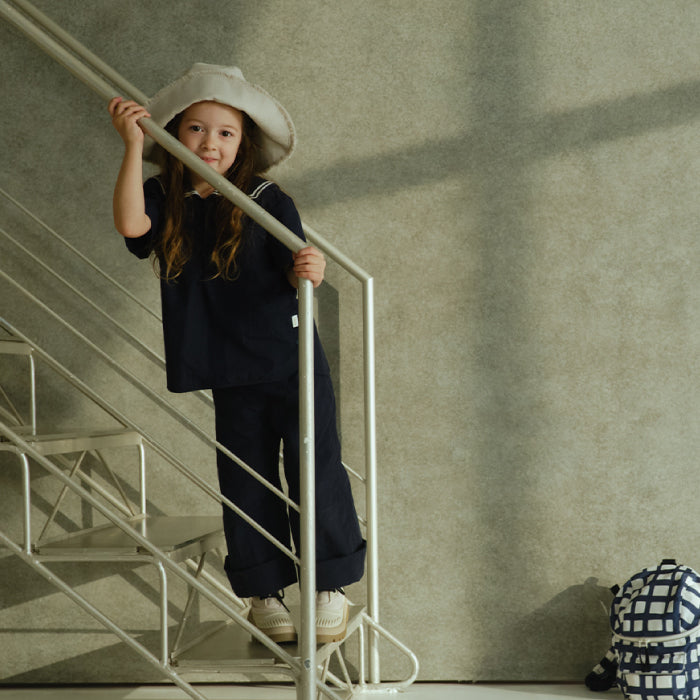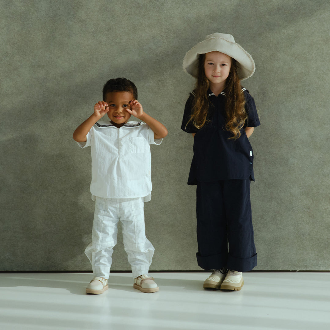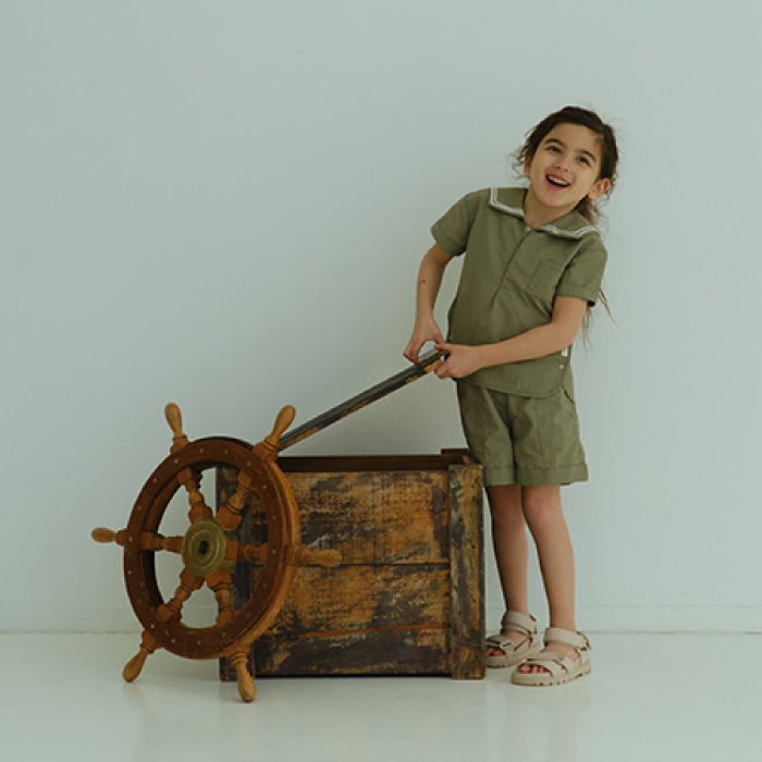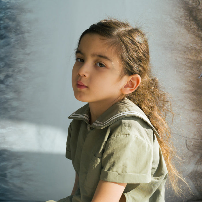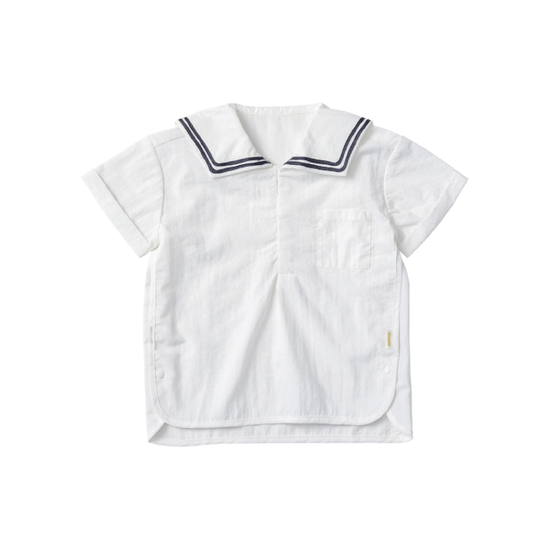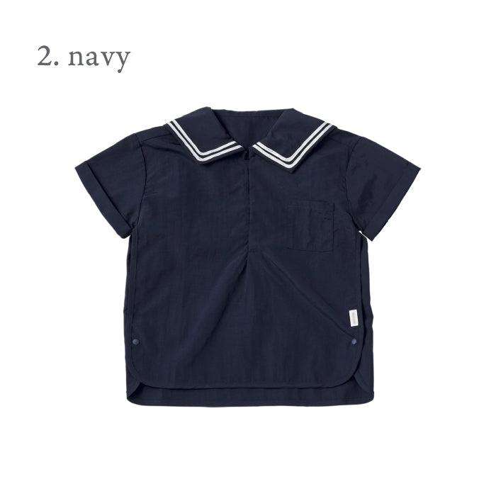 襟元はセーラーカラーから着想を得たデザインで、夏の冒険にぴったりです。