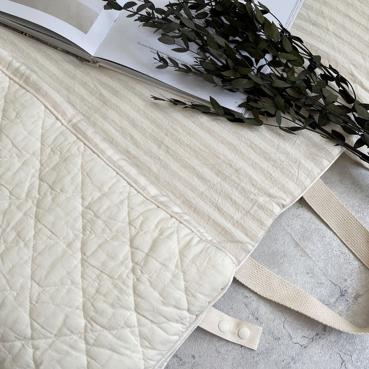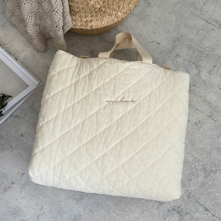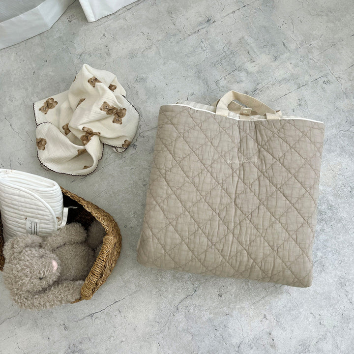 ブランケットや枕もいれて一緒に持ち運べる便利なトートバッグ型です。