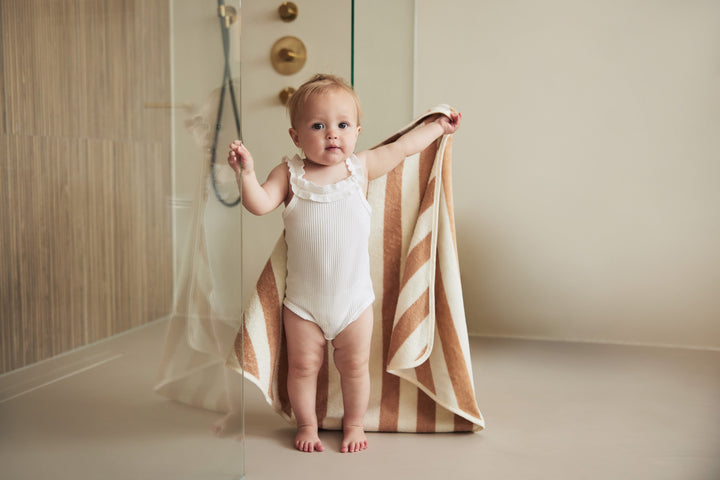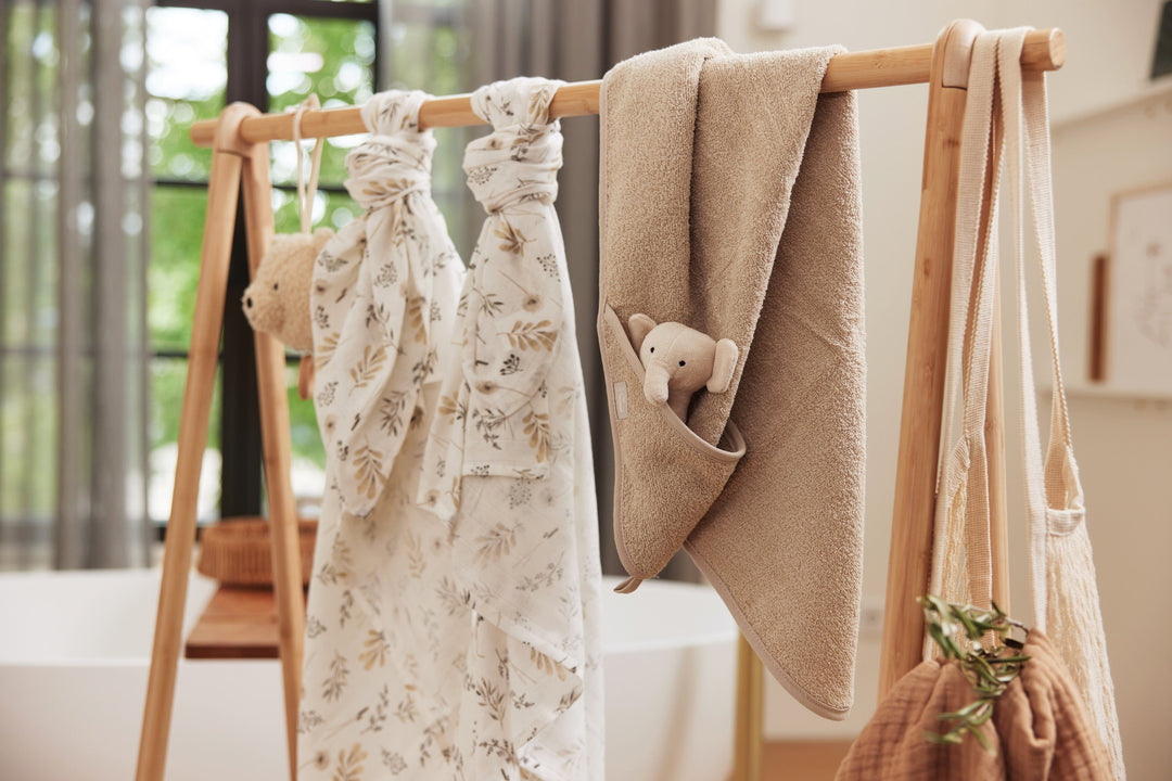 肌触りが良く赤ちゃんが快適に過ごすことができ、そしてデリケートな赤ちゃんの肌にやさしく、吸湿性に優れたふんわり生地であっという間に乾かす事ができます。