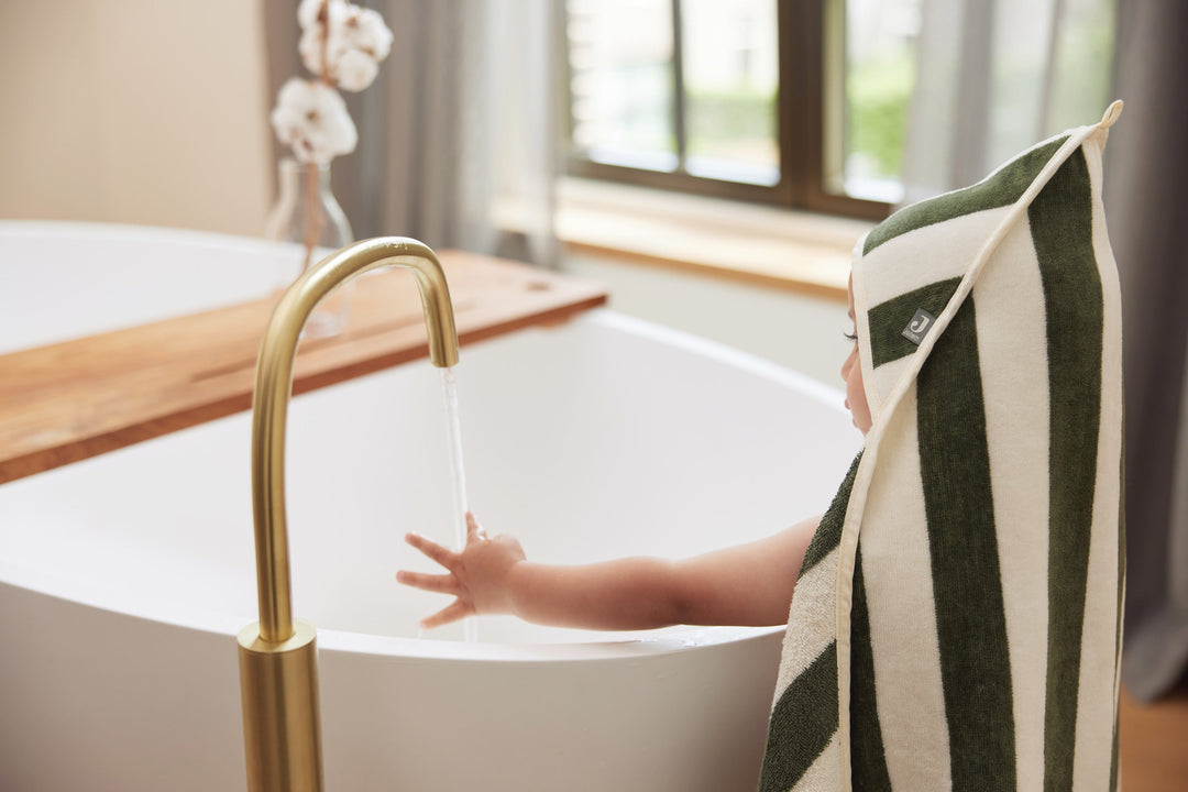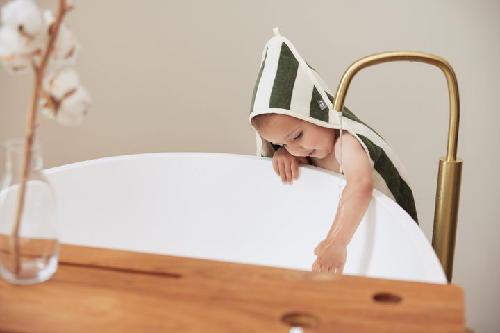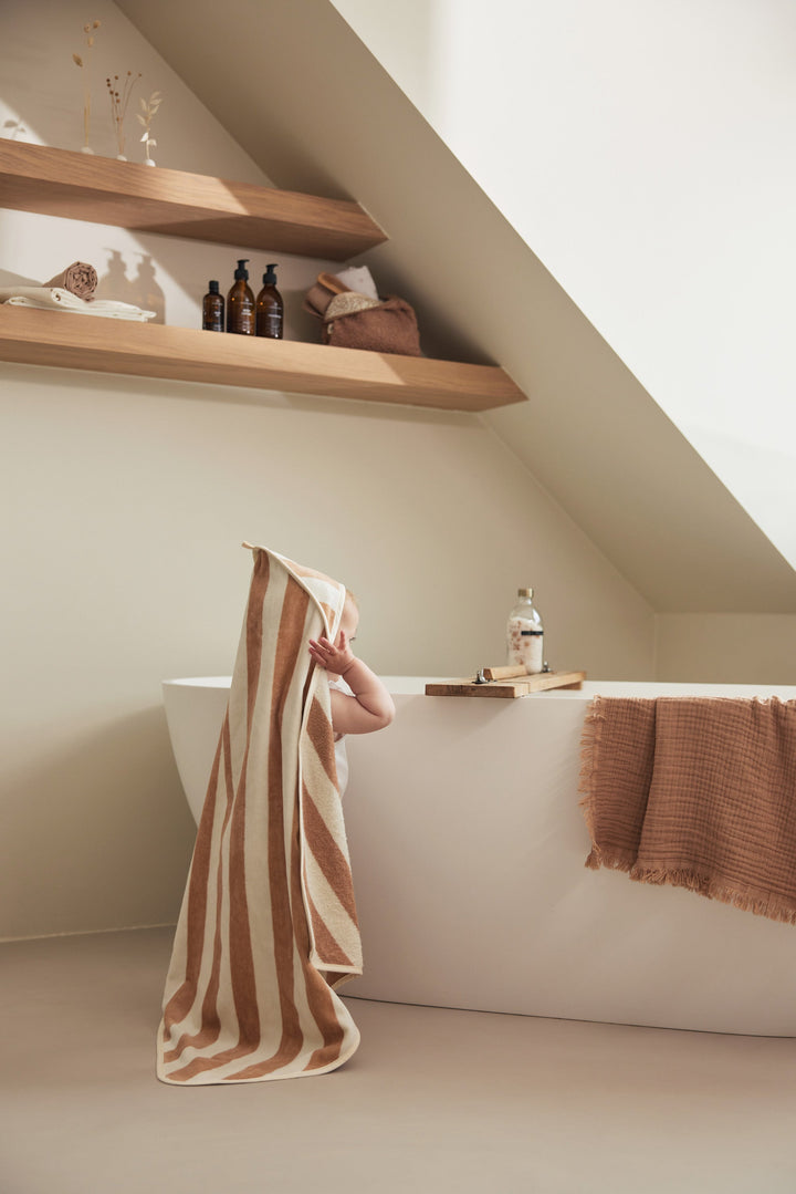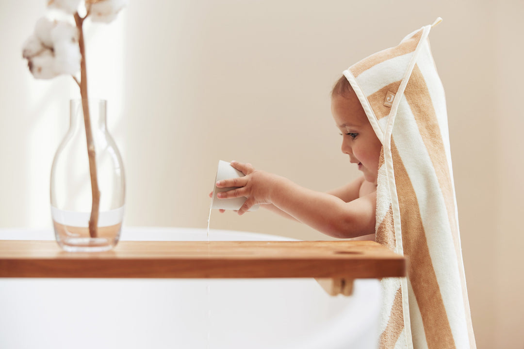 入浴や海・プールなどの水遊びの後にピッタリなバスケープです。水から上がった赤ちゃんを暖かく包みます。