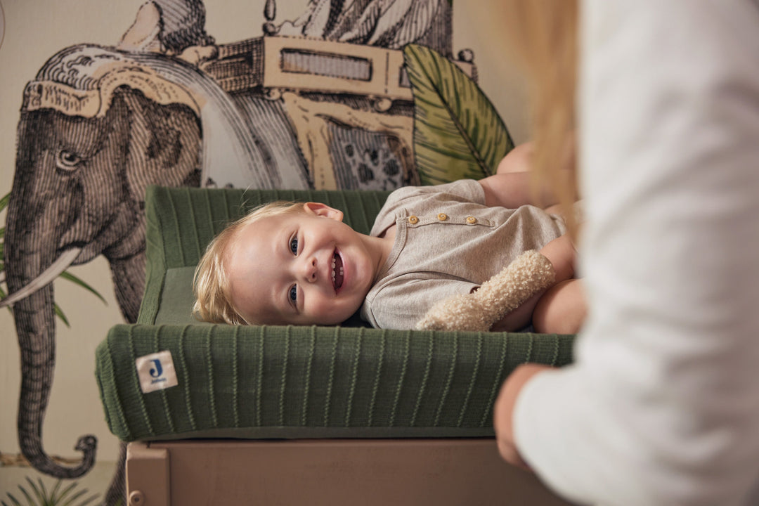 このニットカバーがあれば、実用的なチェンジングマットがとってもオシャレなインテリアに。