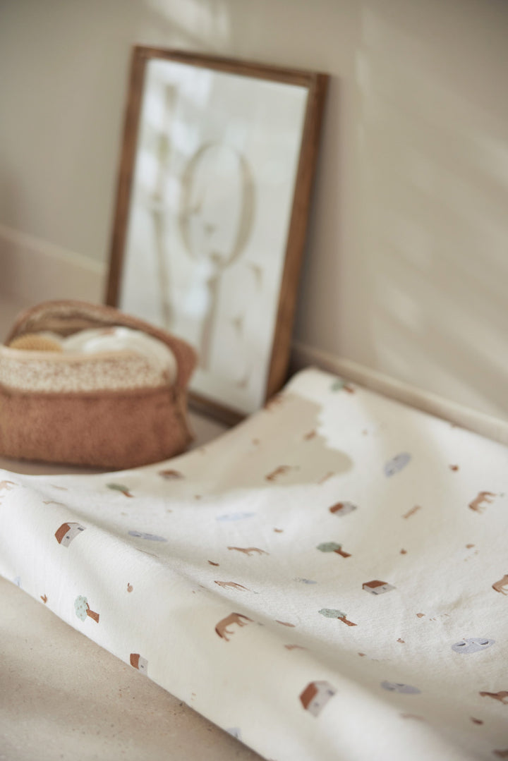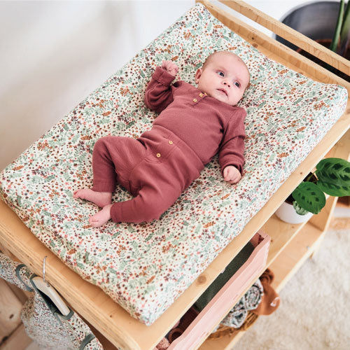 このチェンジングマットカバーは、マットにしっかりと固定されるので、 赤ちゃんはしっかりとした柔らかい生地の上に快適に横たわることができます。