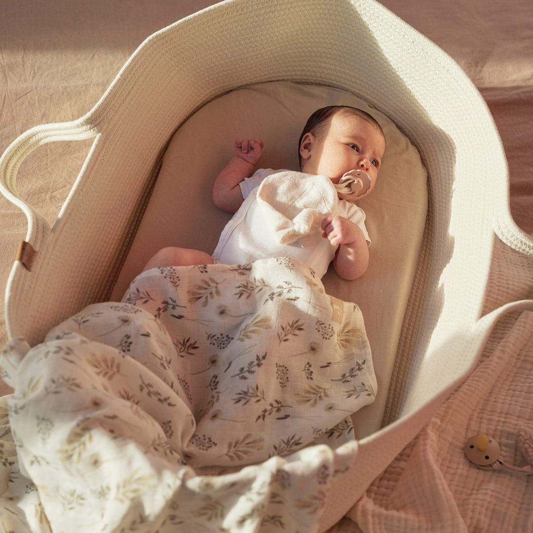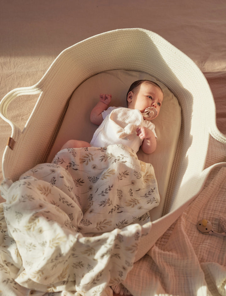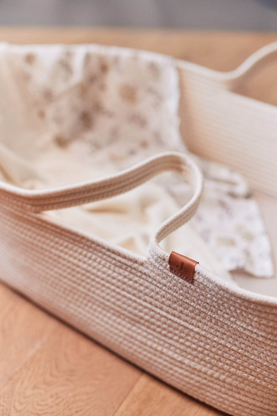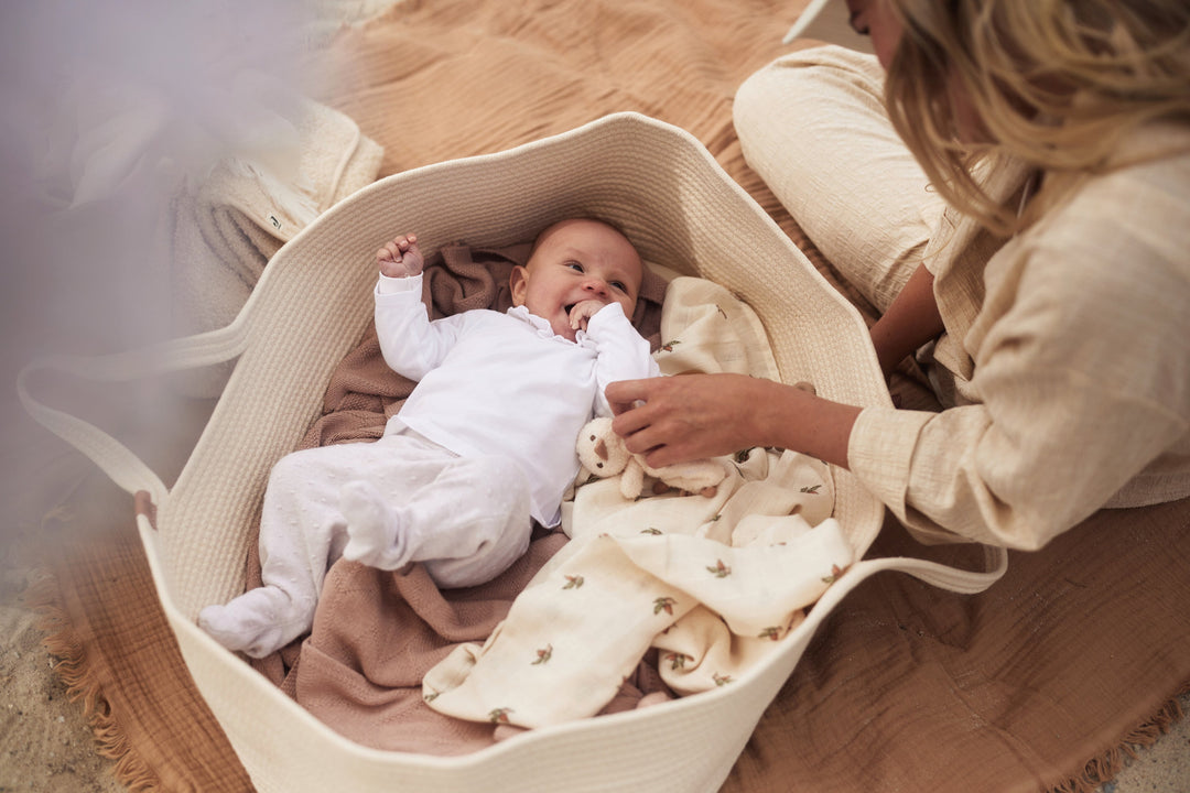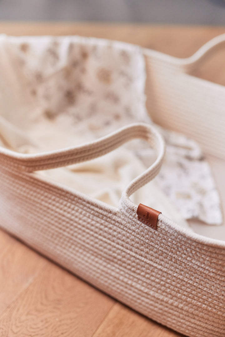 ロープ編みクーファン ベビーバスケットは生後数か月の赤ちゃんを近くで見守るのに便利です。