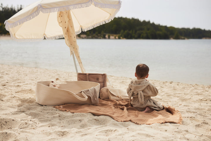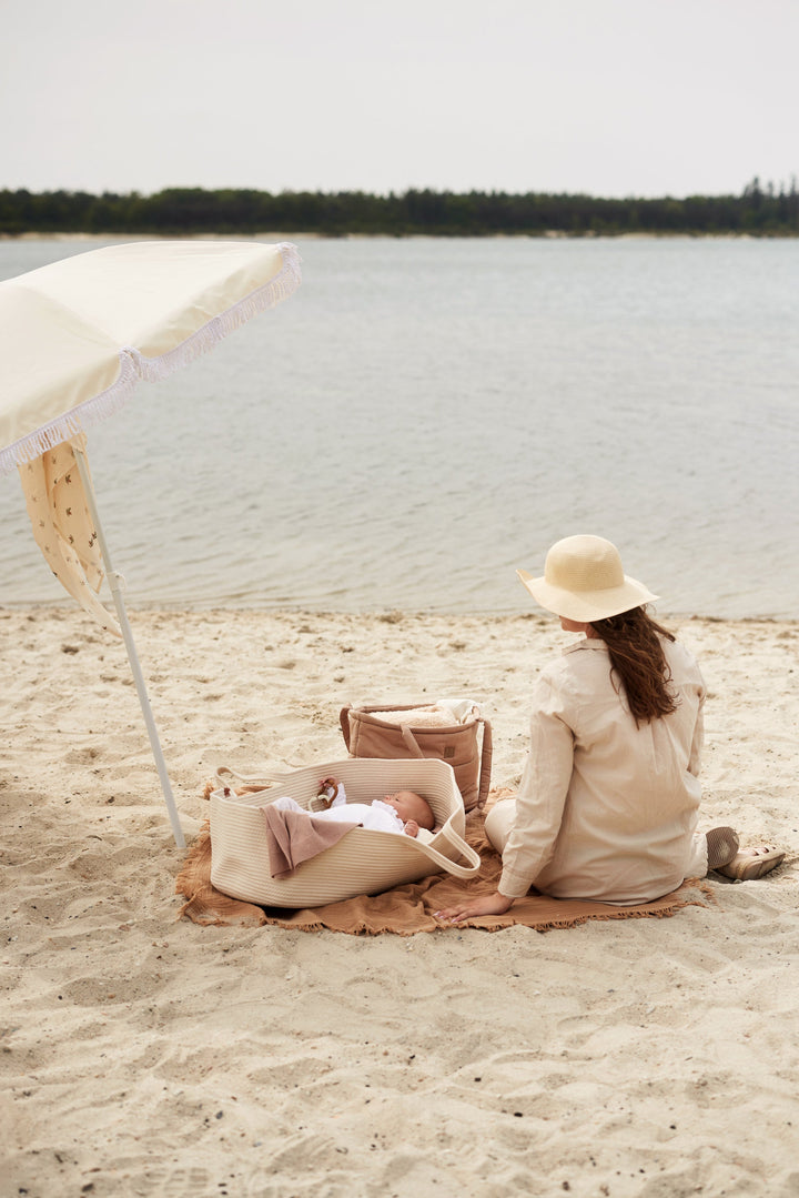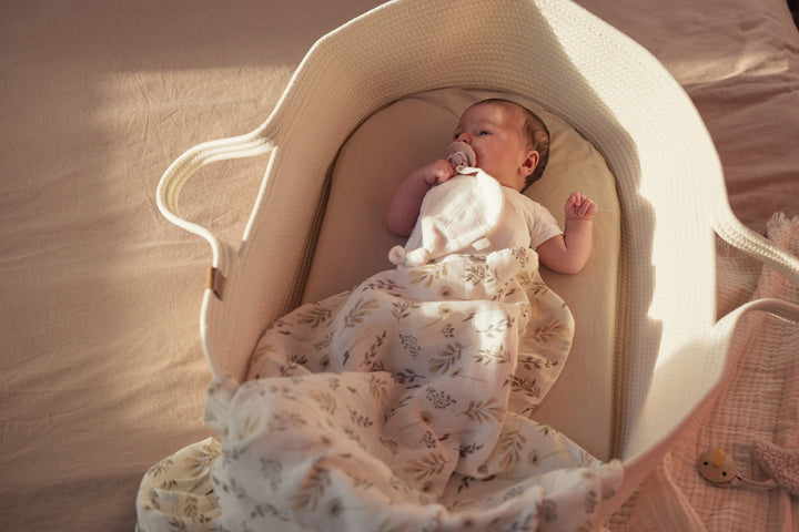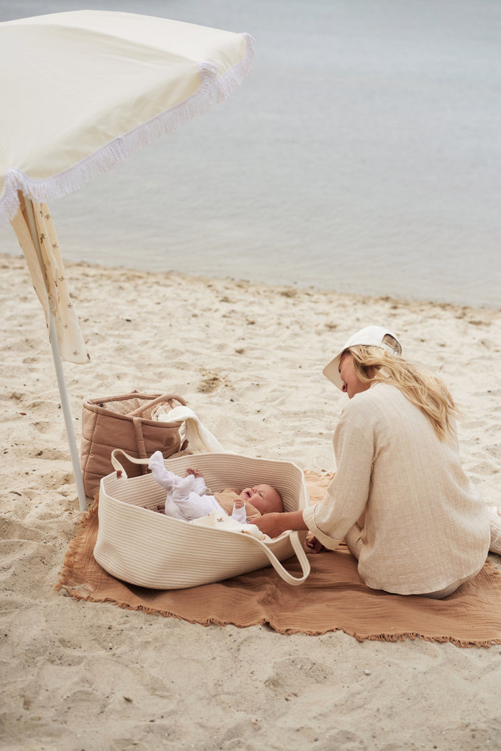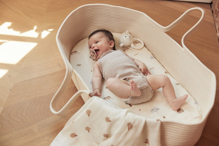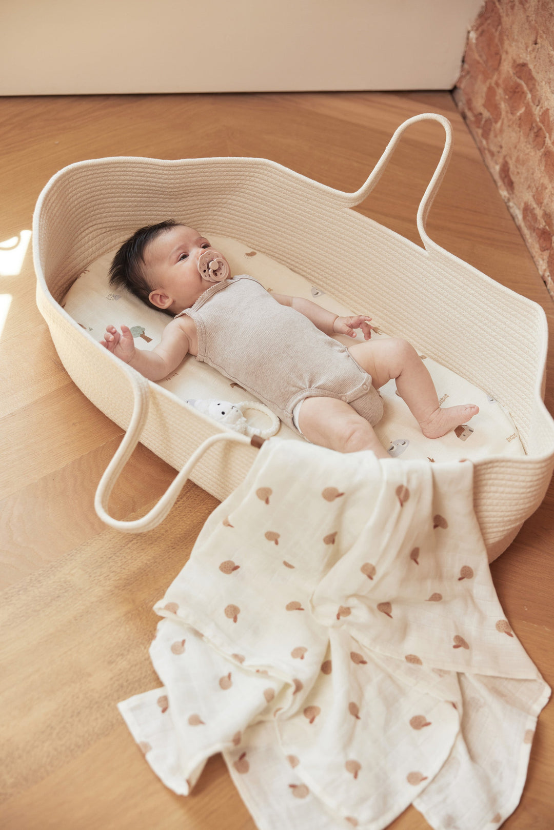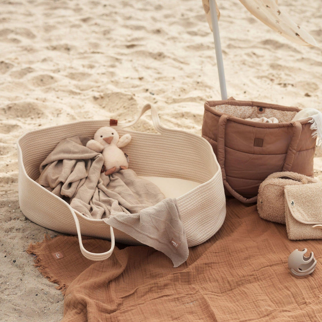 ロープ編みクーファン ベビーバスケットは生後数か月の赤ちゃんを近くで見守るのに便利です。