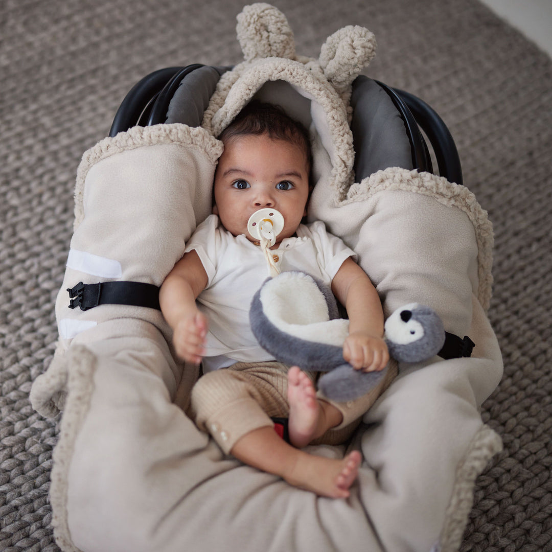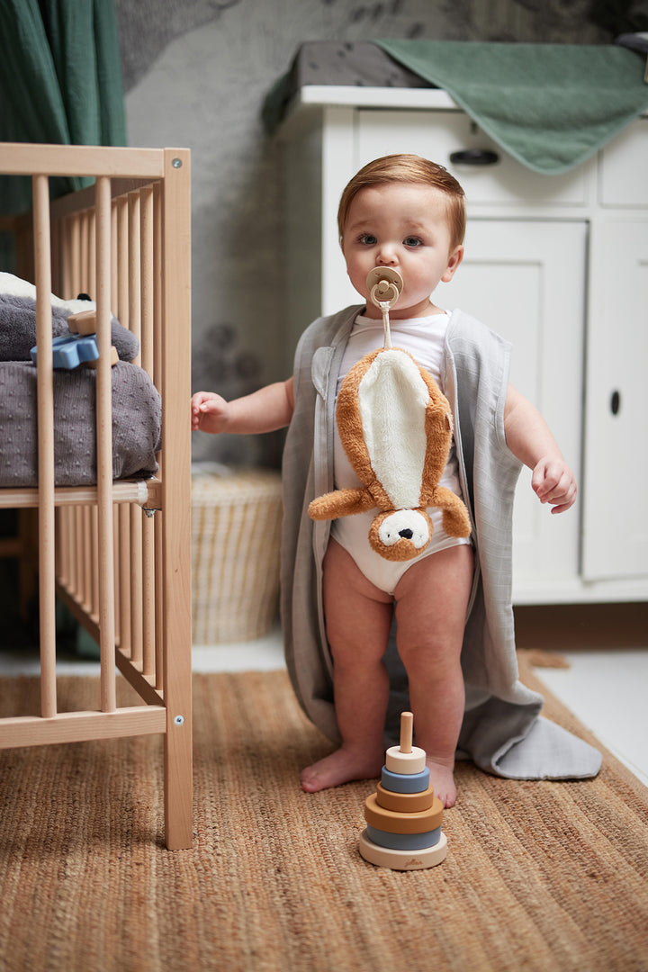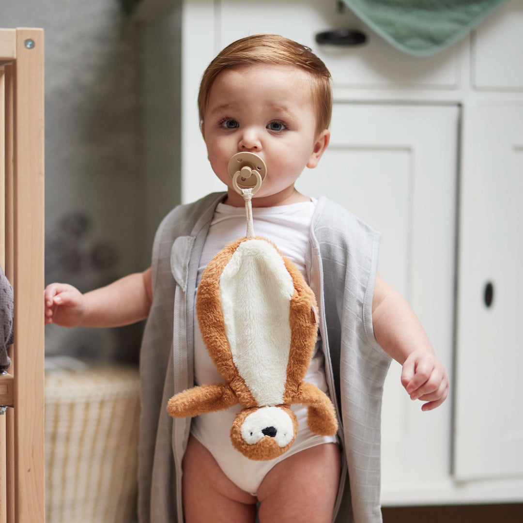 Jolleinのおしゃぶりクロスはベビーのおもちゃや寝かしつけアイテムとしてはもちろん、小さくて見失いがちなおしゃぶりの紛失防止の目印としても活躍します◎