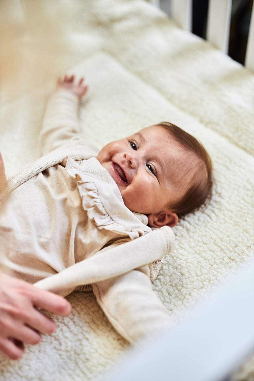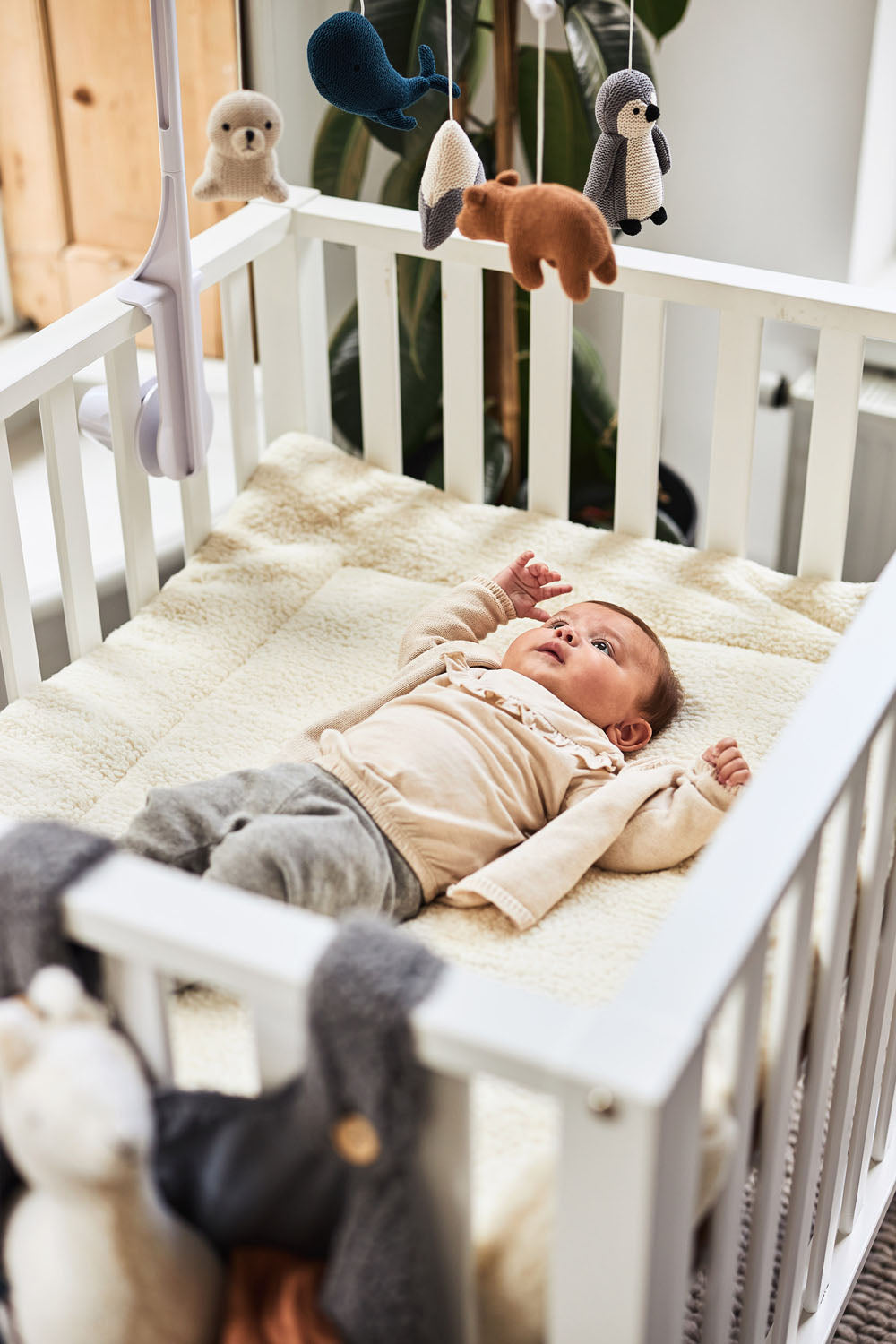 この美しいニットのプレイマットの上で、赤ちゃんはふかふかの寝心地に包まれます。