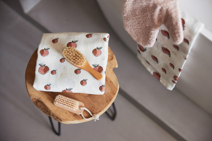 hydrophilic cloths(親水性生地)は濡れやすい性質。つまり水分をたくさん吸収してくれるのでお風呂上りなどに最適な生地です。薄い生地なのでさっとなでる事でやさしいのにしっかりとふき取ってくれ、デリケートな赤ちゃんの肌を守ってくれます。