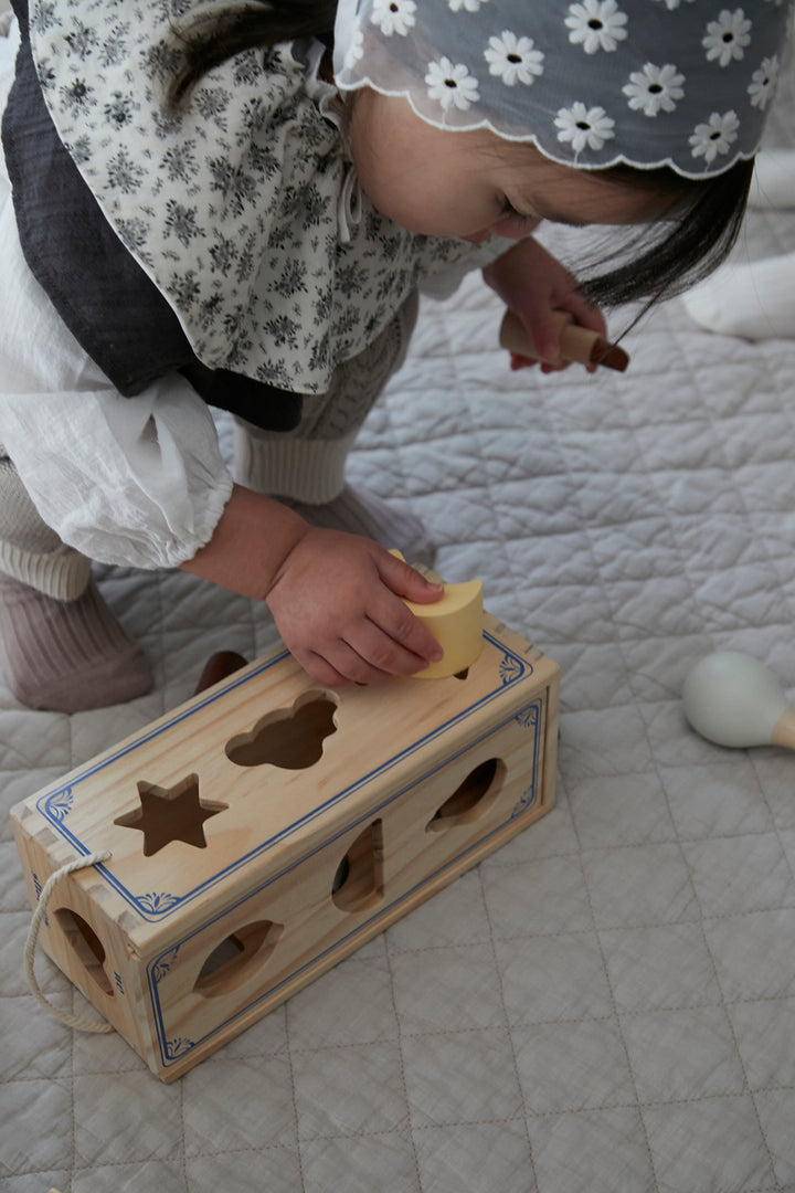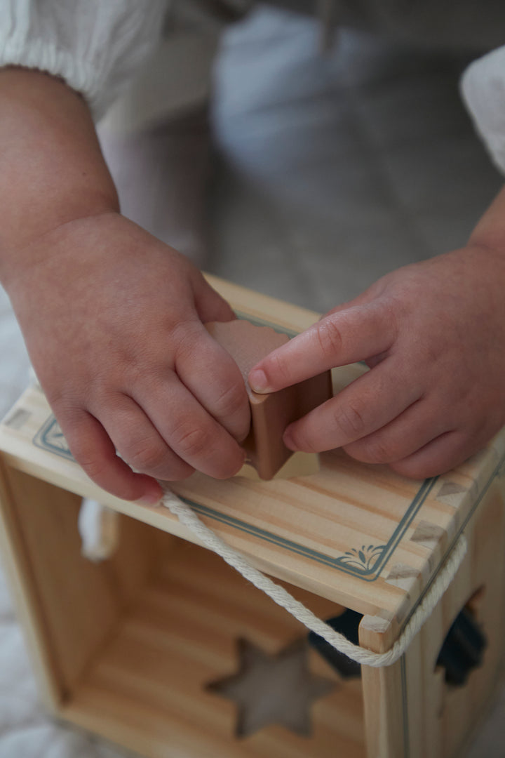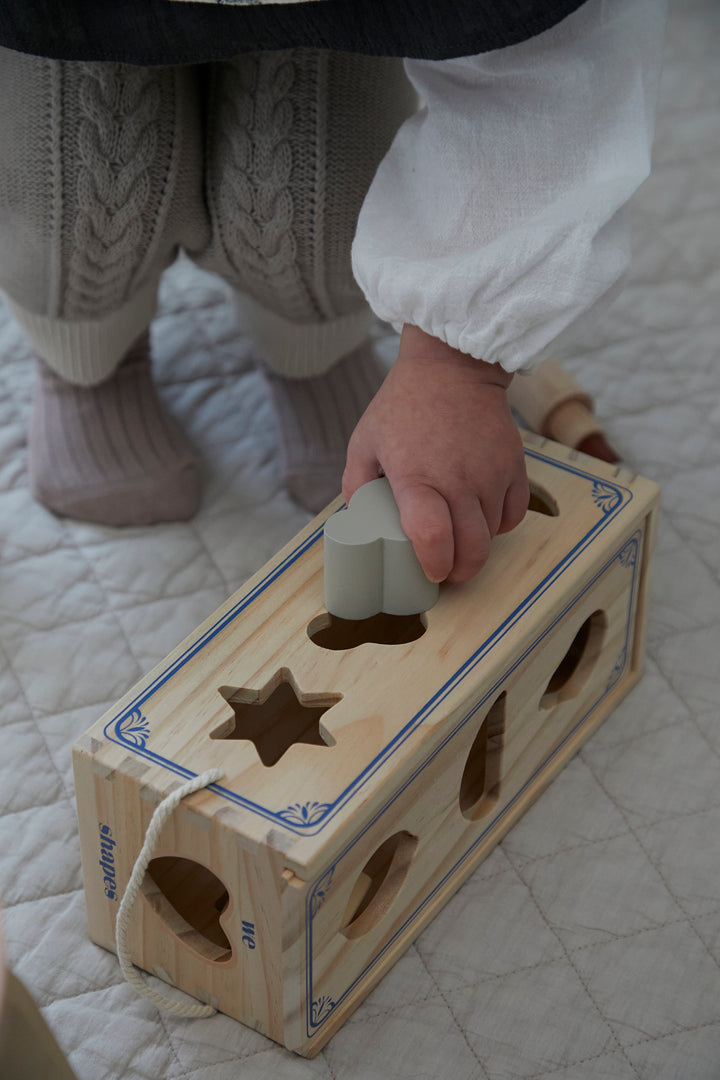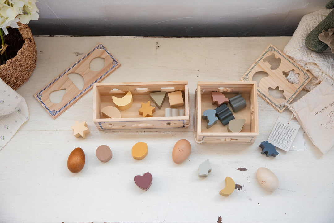 ・さまざまな形に抜かれたのシェープソーターに型はめすることで、手先を使うので手の細かい運動能力の促進に役立ちます。