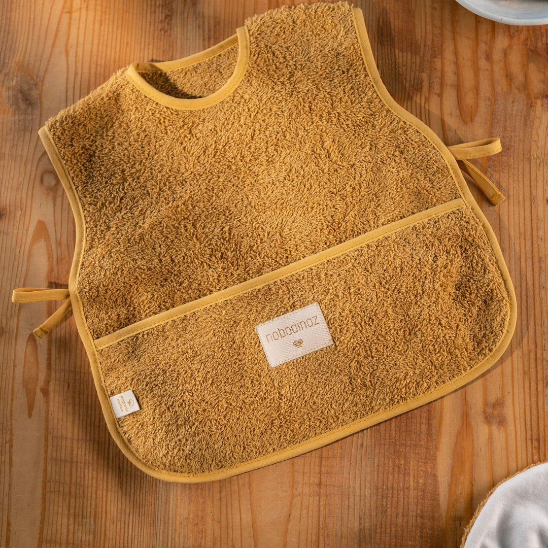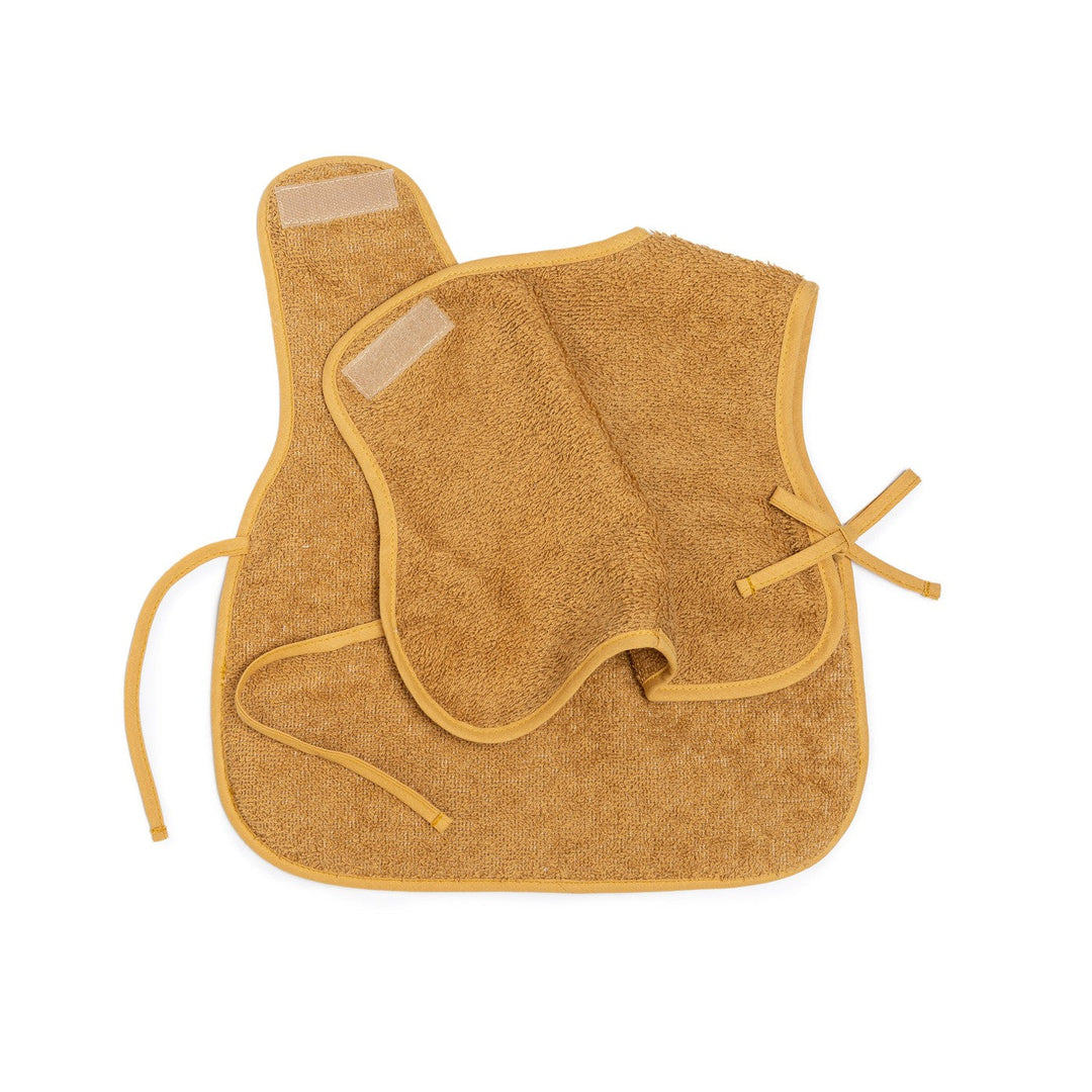 肩部分のベルクロと、サイドのリボンで着脱が簡単。