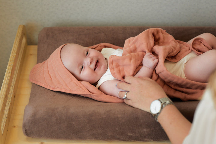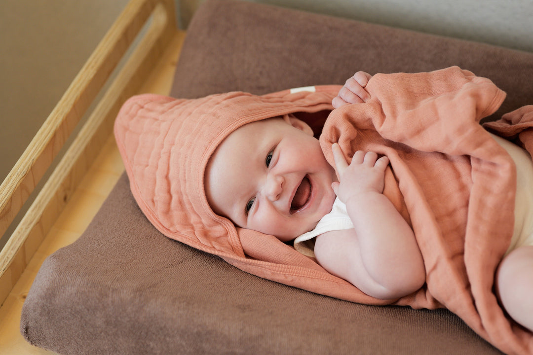 肌触りが良く赤ちゃんが快適に過ごせ、デリケートな赤ちゃんの肌にやさしく、吸湿性に優れたふんわり生地であっという間に乾かす事ができます。