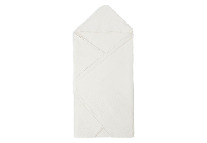 生地にはかわいい刺繍が施され、フードには飾り縁で仕上げています。赤ちゃんの更なる可愛らしさを演出します。
